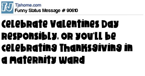 - # 173710 Tip for next month: Celebrate Valentines Day responsibly, or you'll be celebrating Thanksgiving in a maternity ward