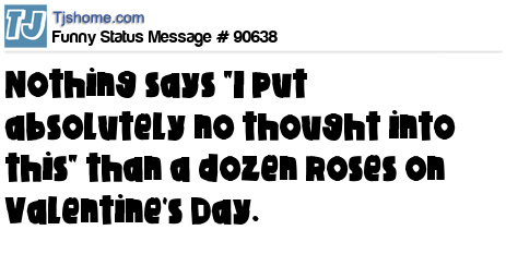 - # 145551 A dozen roses: $12, a box of chocolates: $10, a Happy Valentines Day card: $2, still having $24 dollars because you're single: priceless!