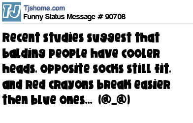 X Recent studies suggest that balding people have cooler heads, opposite socks still fit, and red crayons break easier then blue ones... (@_@)