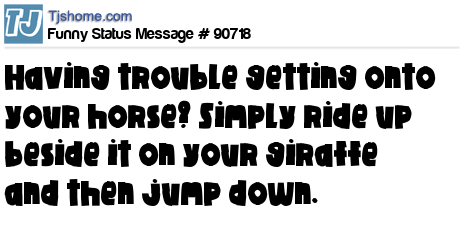 X Having trouble getting onto your horse? Simply ride up beside it on your giraffe and then jump down.