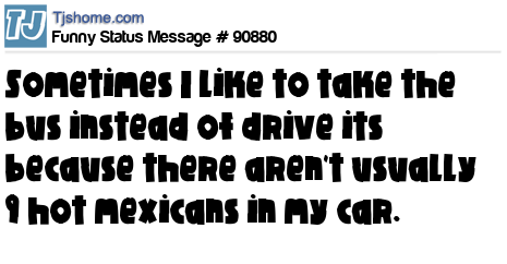 X is Sometimes I like to take the bus instead of drive its because there aren't usually 9 hot mexicans in my car.