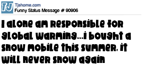 X is i alone am responsible for global warming...i bought a snow mobile this summer, it will never snow again