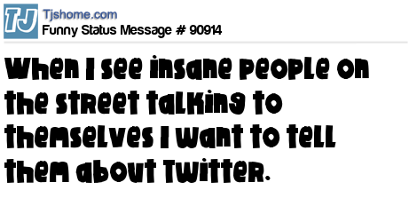 X says When I see insane people on the street talking to themselves I want to tell them about Twitter.