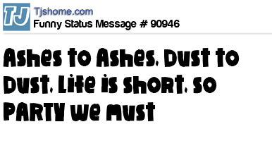 X Ashes to Ashes, Dust to Dust, Life is short, so PARTY we must
