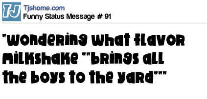 X is "wondering what flavor milkshake ""brings all the boys to the yard"""