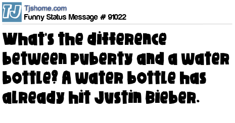 - # 33387 What's the difference between a bottle and puberty?? .........A bottle has already hit Justin Bieber!!