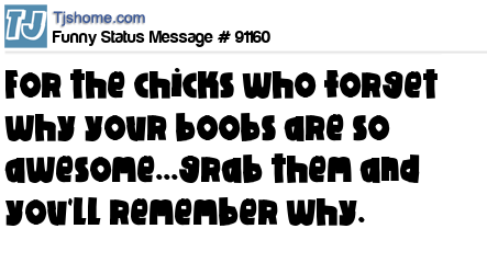X says For the chicks who forget why your boobs are so awesome...grab them and you'll remember why.