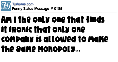 - # 42990 Does anyone else see the irony that the game "Monopoly" is made by one company?