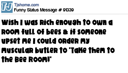 X is Wish I was rich enough to own a room full of bees & if someone upset me I could order my muscular butler to "Take them to the Bee Room!"