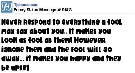 X is Never respond to everything a fool may say about you.. it makes you look as fool as them! However, ignore them and the fool will go away... it makes you happy and they be upset