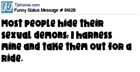 X says Most people hide their sexual demons; I harness mine and take them out for a ride.