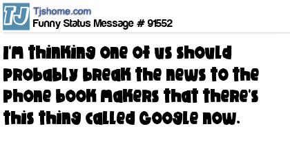 X I'm thinking one of us should probably break the news to the phone book makers that there's this thing called Google now.