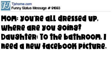 - # 183912 Mom: you're all dressed up, where are you going? Daughter: To the bathroom, I need a new picture for my facebook profile.
