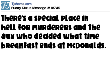 - # 139829 Theres a special place in hell reserved fo the guy that decided what time McDonalds beakfast ends..