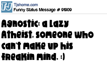 X  Agnostic: a lazy Atheist, someone who can't make up his freakin mind. :)