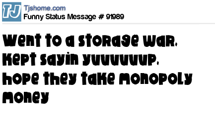 X is went to a storage war, kept sayin yuuuuuup, hope they take monopoly money