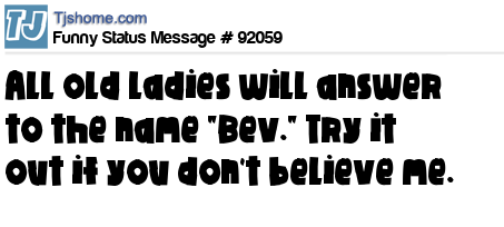 X All old ladies will answer to the name "Bev." Try it out if you don't believe me.