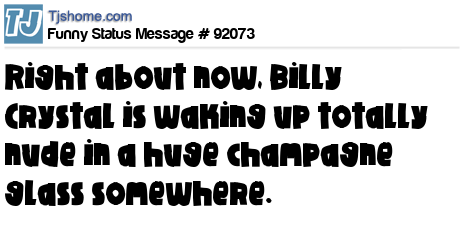 X Right about now, Billy Crystal is waking up totally nude in a huge champagne glass somewhere.