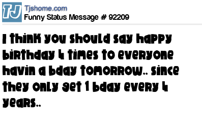 X says I think you should say happy birthday 4 times to everyone havin a bday tomorrow.. since they only get 1 bday every 4 years..