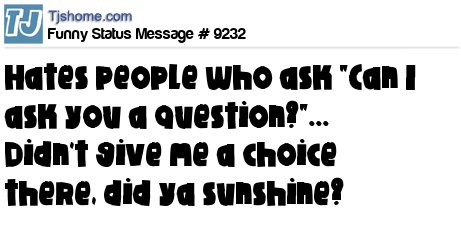 - # 17047 can't stand people who say "Can I ask you a question?"... Didn't give me a choice there, did ya sunshine?