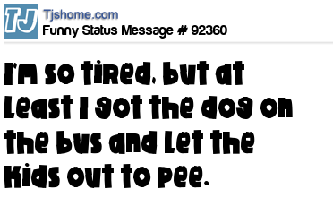 X is I'm so tired, but at least I got the dog on the bus and let the kids out to pee.
