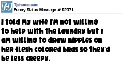 X I told my wife I'm not willing to help with the laundry but I am willing to draw nipples on her flesh colored bras so they'd be less creepy.