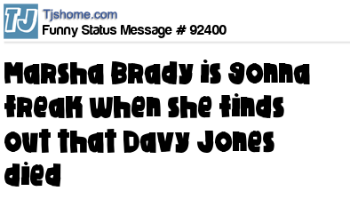 X is Marsha Brady is gonna freak when she finds out that Davy Jones died