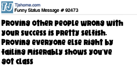 X says Proving other people wrong with your success is pretty selfish. Proving everyone else right by failing miserably shows you've got class