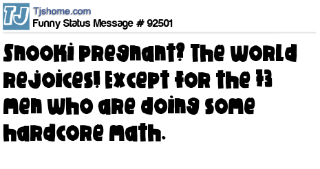- # 92377 Sign of the Apocolypse...Snooki is pregnant. Due 12/12
