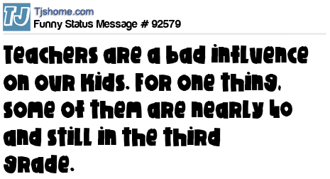 X says Teachers are a bad influence on our kids. For one thing, some of them are nearly 40 and still in the third grade.