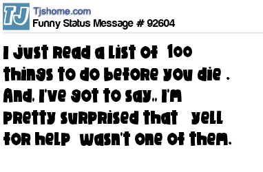- # 8361 ust read a list of 'the 100 things to do before you die'. I'm pretty surprised 'yell for help' wasn't one of them.