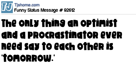 X The only thing an optimist and a procrastinator ever need say to each other is 'tomorrow.'
