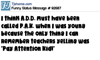 X I think A.D.D. must have been called P.A.K. when I was young because the only thing I can remember teachers yelling was "Pay Attention Kid!"