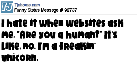 X is I hate it when websites ask me, "Are you a human?" It's like, no, I'm a freakin' unicorn.