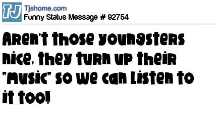 X says Aren't those youngsters nice, they turn up their "music" so we can listen to it too!