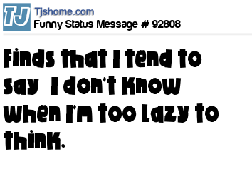 - # 85744 I tend to say " I don't know" when i'm too lazy to speak.
