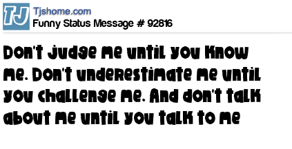 X is Don't judge me until you know me. Don't underestimate me until you challenge me. And don't talk about me until you talk to me