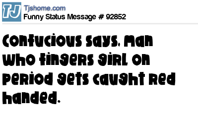 X is Confucious says, man who fingers girl on period gets caught red handed.