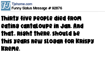X Thirty five people died from eating cantaloupe in Jan. And that,, right there, should be this years new slogan for Krispy Kreme.
