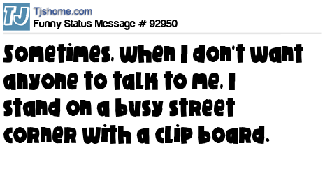 X says Sometimes, when I don't want anyone to talk to me, I stand on a busy street corner with a clip board.