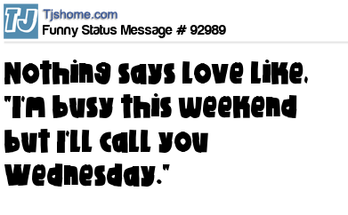X Nothing says love like, "I'm busy this weekend but I'll call you Wednesday."