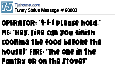 X OPERATOR: "9-1-1 please hold." ME: "Hey, Fire can you finish cooking the food before the house?" FIRE: "The one in the Pantry or on the Stove?"