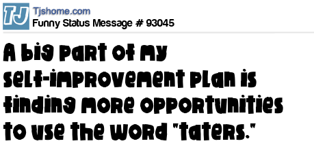 X A big part of my self-improvement plan is finding more opportunities to use the word "taters."