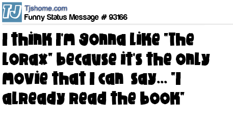 X I think I'm gonna like "The Lorax" because it's the only movie that I can say... "I already read the book"