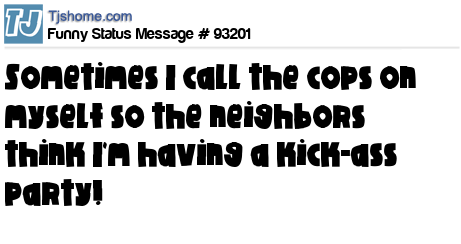- # 93203 Sometimes when I have my friends over I call the cops on myself so the neighbors think I'm having a kick-ass party!