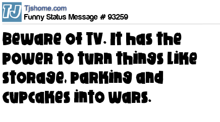 X Beware of TV. It has the power to turn things like storage, parking and cupcakes into wars.