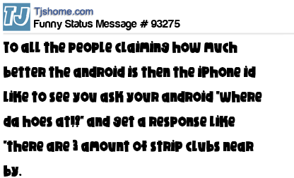 - # 101497 It's absolutely hilarious when an idiot tries to convince you and themselves that Android handsets are better than an iPhone.