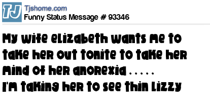 X My wife elizabeth wants me to take her out tonite to take her mind of her anorexia . . . . . I'm taking her to see thin lizzy