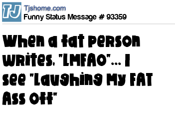 X says When a fat person writes, "LMFAO"... I see "Laughing My FAT Ass Off"