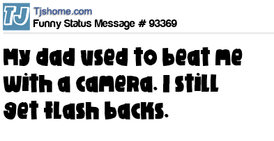 - # 135847 My dad used to beat me with a camera. I still get flash backs
